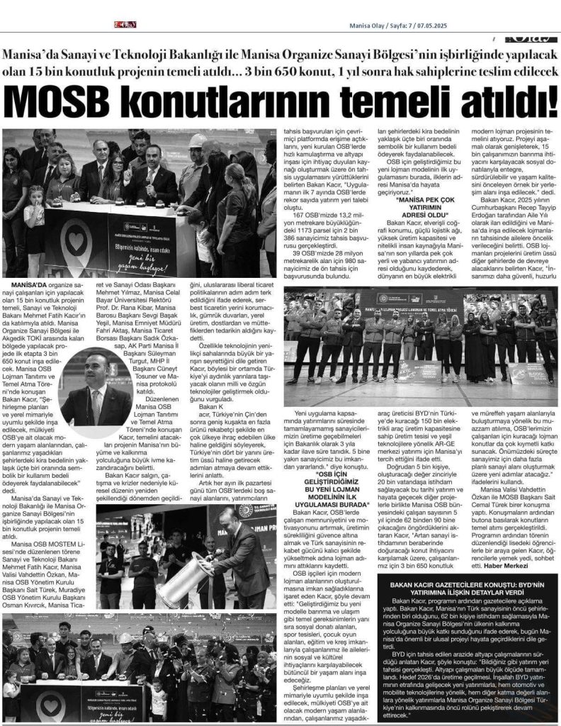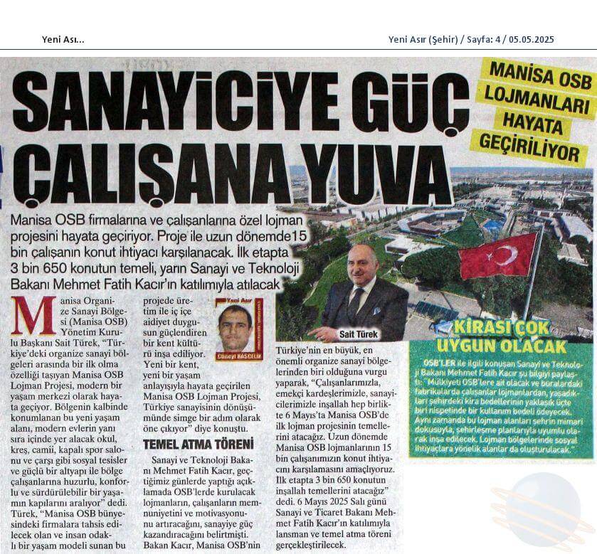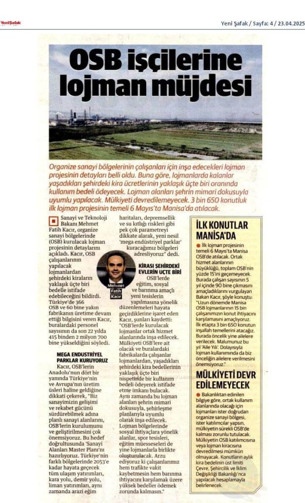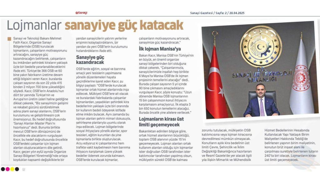 Manisa OSB’de Lojman Müjdesi