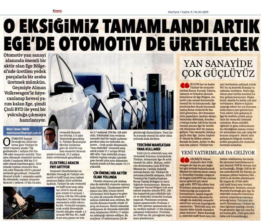 O Eksiğimiz Tamamlandı Artık Ege’de Otomotiv De Üretilecek