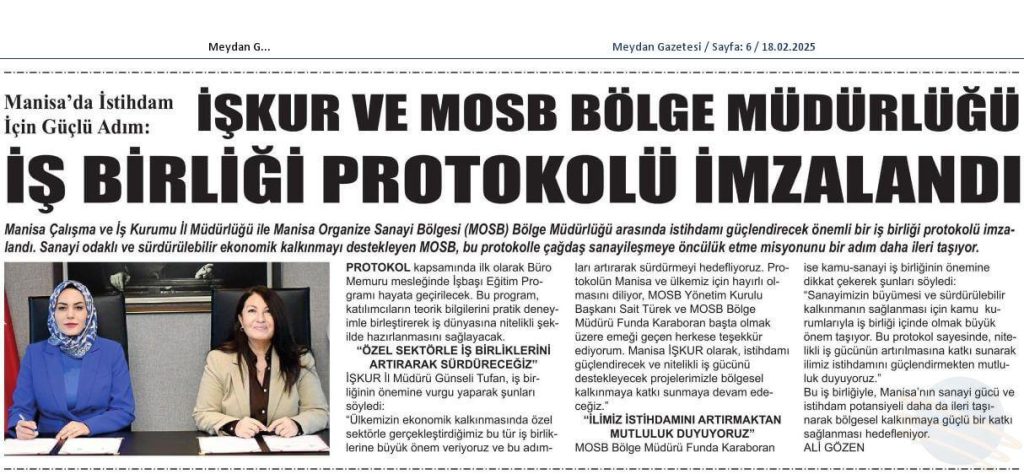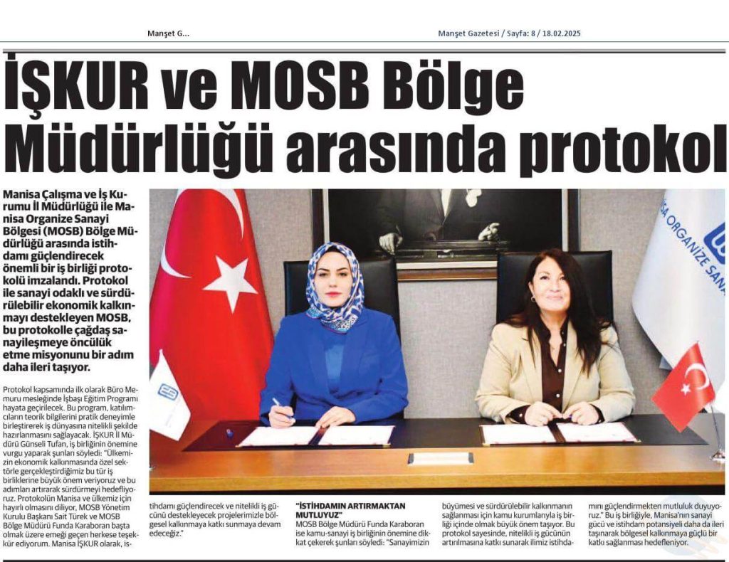 İŞKUR Ve MOSB Bölge Müdürlüğü İş Birliği Protokolü İmzalandı