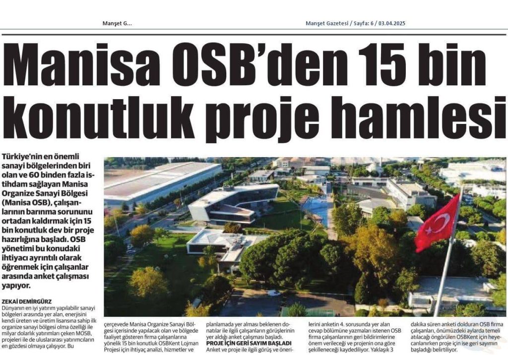 Manisa OSB’den 15 Bin Yeni Konut